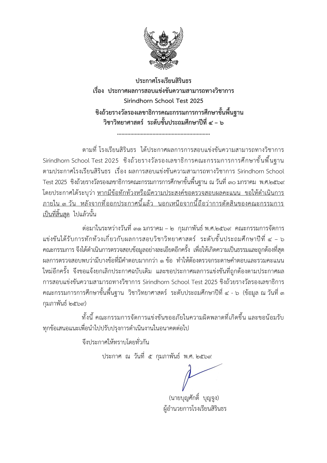 | ประกาศผล | 30 มกราคม 2569 (ยื่นทักท้วง/ขอตรวจสอบคะแนน ภายใน 3 วัน) |